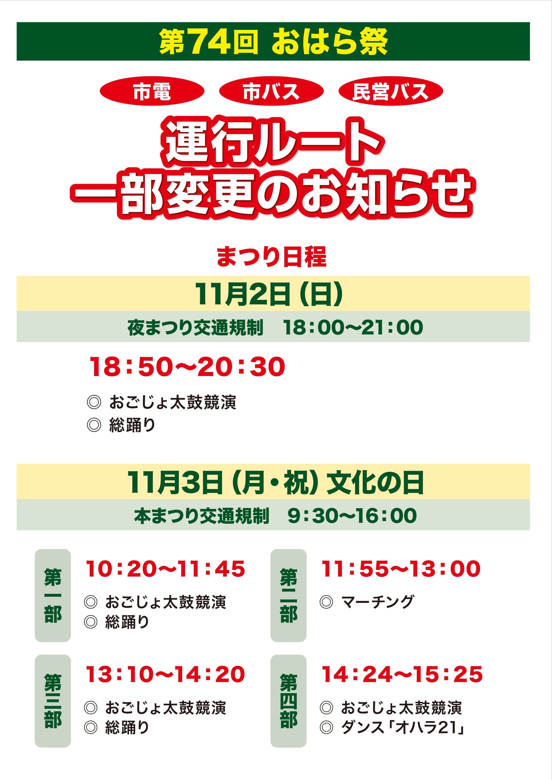 第74回・おはら祭開催に伴う市電・市バスの運行について(令和7年11月2日・3日)