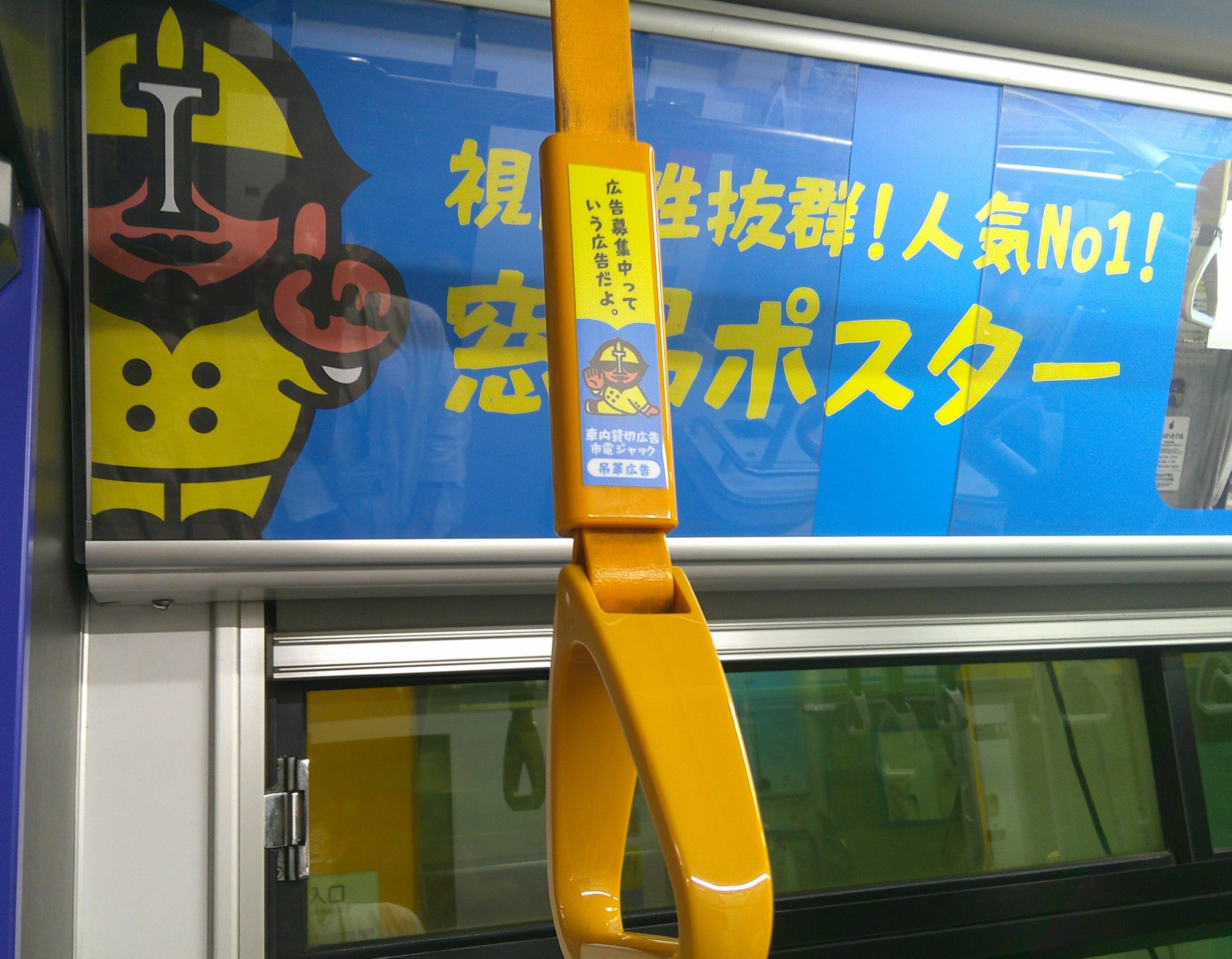 市民の皆さまに広告のインパクトを知っていただくため、今回、交通局自ら電車内貸切広告(ジャック広告)を掲出し、現在運行中です。