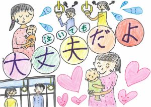 車内では静かにするというマナーの中で、小さな子供と一緒に乗るお母さん達の気持ちに寄り添った、素敵なキャッチコピーのポスターです。周囲の人もこのポスターを見て、穏やかな気持ちになってくれるでしょう。