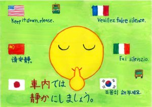 少し前と比べると、外国から来る観光客が本当に増えました。乗車マナーも国によって様々ですので、日本の乗車マナーを様々な国の言語と、わかりやすいイラストでお知らせできる、優れた機能を持つ、ポスターだと思いました。
